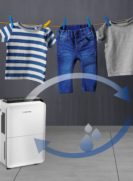 Laundry drying function: For gentle air drying of laundry, the laundry drying mode is recommended. The laundry drying function (also known as textile drying mode or SuperDry function) is comparable to traditional air drying outdoors. Dehumidifiers like the TTK 99 HEPA offer the advantage that laundry is dried as gently as in nature.