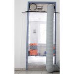 The DCD (Dust Control Door) is a door bulkhead that replaces a room door. When in use, the room is separated by a sheet and is easy to walk through. In combination with an air purifier used to maintain negative pressure, the door bulkhead is an effective dust barrier. The hoses of the air purifier are routed through the DCD to the point of dust generation, resulting in extraction at the workplace.
