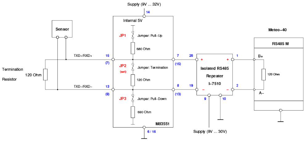 A RS485/422 interface is available for serial communication. It can be operated in full or half duplex mode. Predefined data telegrams are available for outputting measured values (e.g., VD, VDT, NMEA, etc.). A Modbus RTU protocol is additionally implemented for extended standardised communication. The device can be switched to Modbus RTU mode with the relevant command.