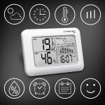Комбинированное устройство 6-в-1 отображает значения климата в помещении, прогноз погоды, 12-часовую статистику температуры, индикацию хорошего самочувствия, время и дату, а также оснащено цифровым будильником.