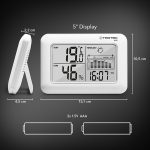 Термогидрометр BZ07, который можно использовать как напольное или настенное устройство, предоставляет вам актуальную информацию о текущем климате в помещении с одного взгляда. Большой и легко читаемый 5-дюймовый ЖК-дисплей показывает как температуру в помещении (в °C или °F), так и влажность (в %).