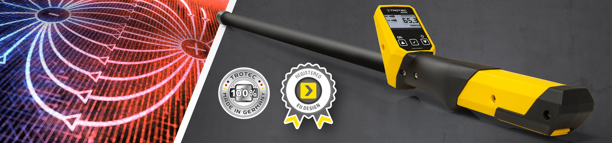 Detection of changing magnetic fields, caused by ferromagnetic metals in the groundUp to a depth of 3 m (depending on the size of the object searched for)